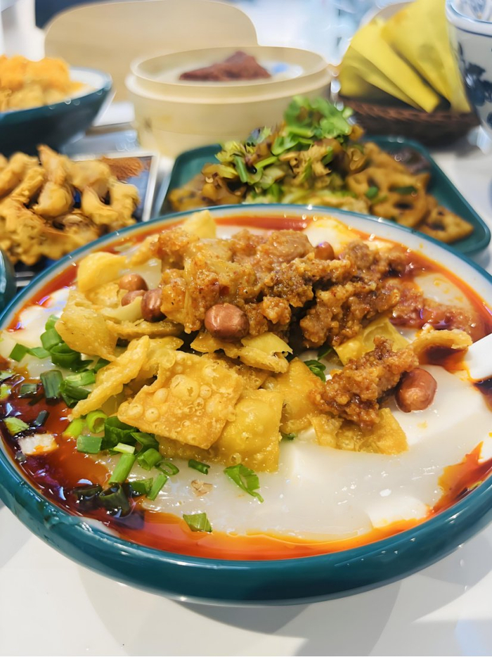 4.豆腐脑:咸辣口味,配酥肉/肥肠